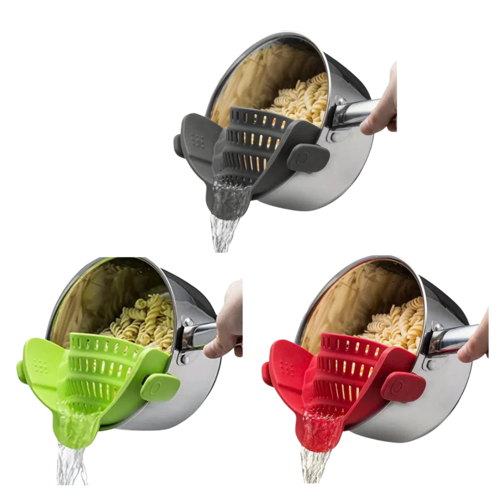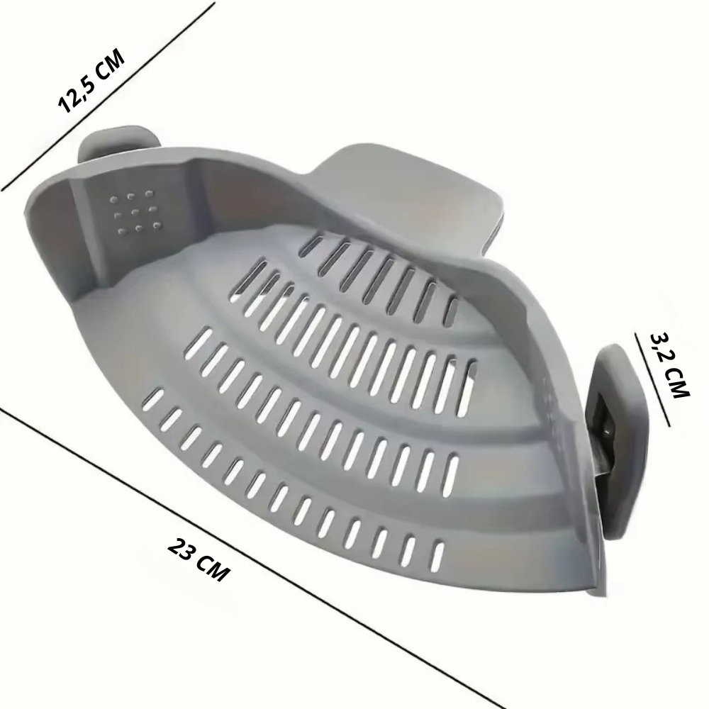RUT är tillverkad i värmetåligt, flexibelt silikon och fästs direkt på kanten av din kastrull, stekpanna eller skål. Du slipper klumpiga durkslag och risk för spill – bara kläm fast och häll av. Den smarta designen passar de flesta storlekar på kärl, tål höga temperaturer och kan diskas direkt i maskin. Perfekt för pasta, potatis, grönsaker eller soppor – och tar nästan ingen plats i kökslådan.