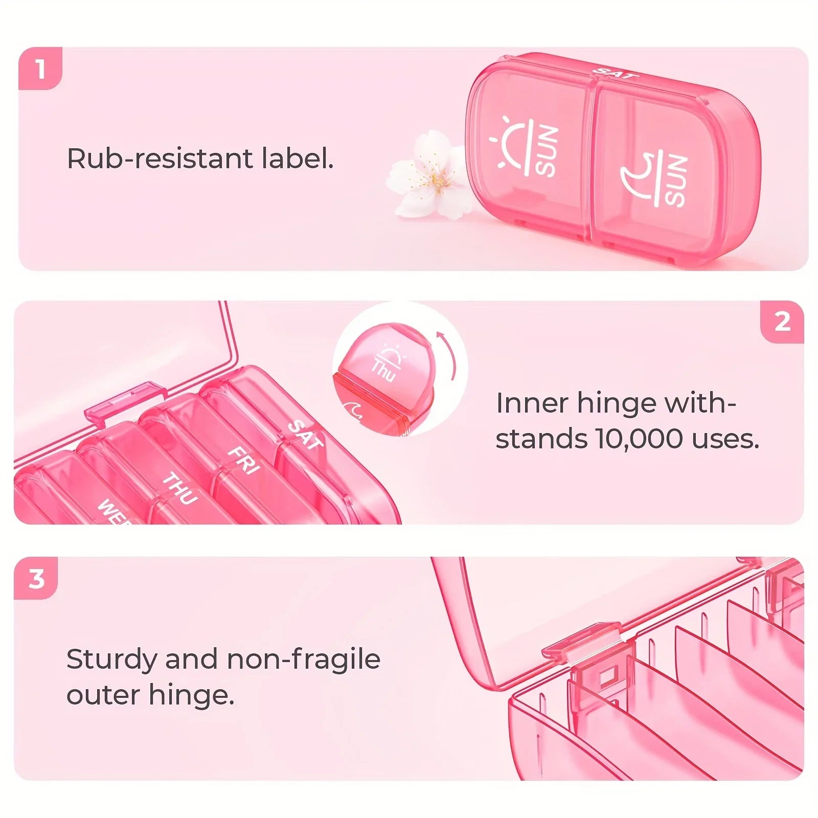 📦 Spacious Yet Compact: With 7 daily boxes and 2 compartments per day, this organizer holds more pills than you'd expect while remaining portable.
